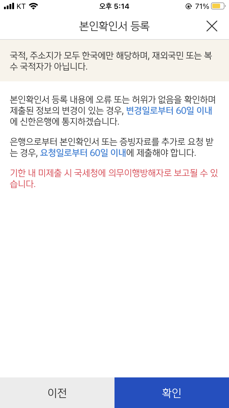본인확인서 고고고