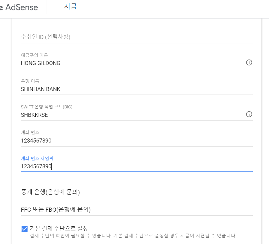 신한은행 외화 체인지업 예금 -> 구글 애드센스 지급 등록 -> 지급 금액 변경