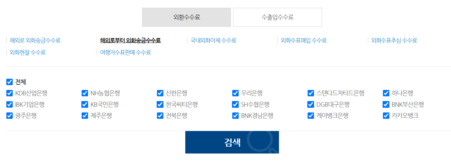 전국은행연합회 소비자포털.. - 여기서 수수료 확인을 했습니다.