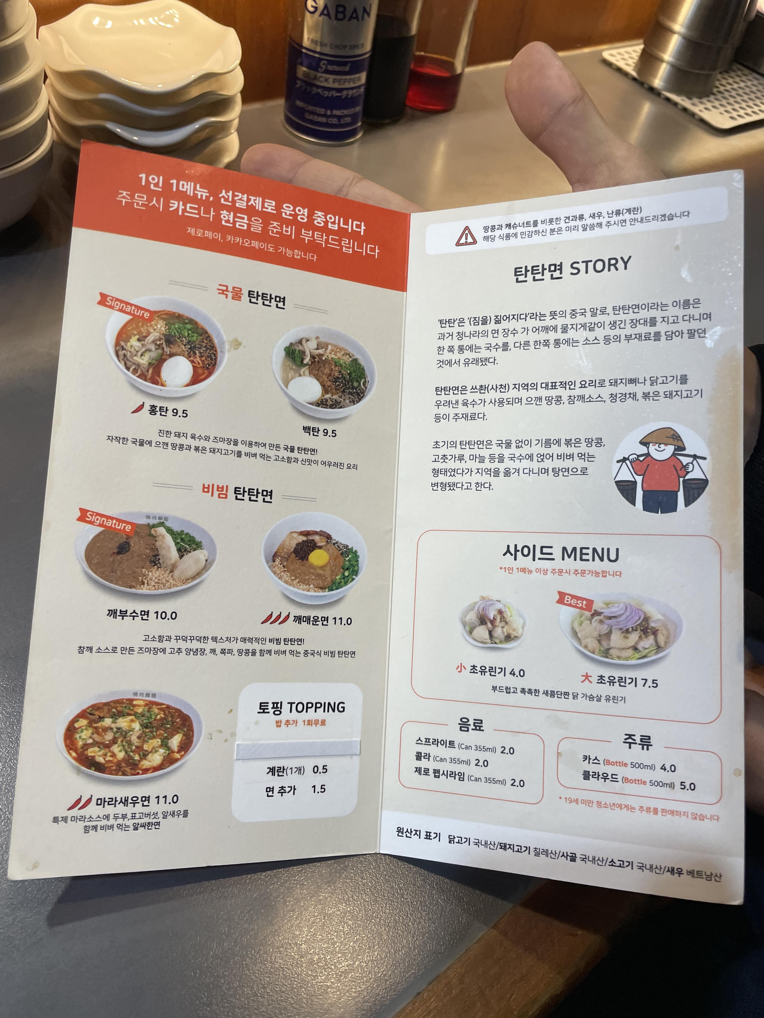현재는 탄탄면 위주.