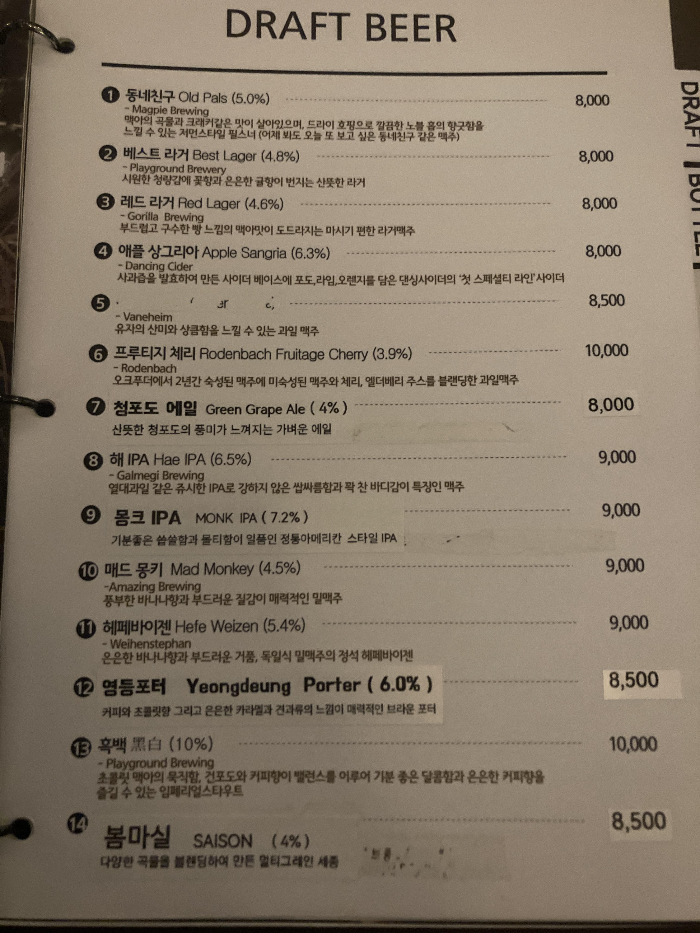 둘러보다 보니 보이는 맥주 메뉴판!ㅋㅋㅋ