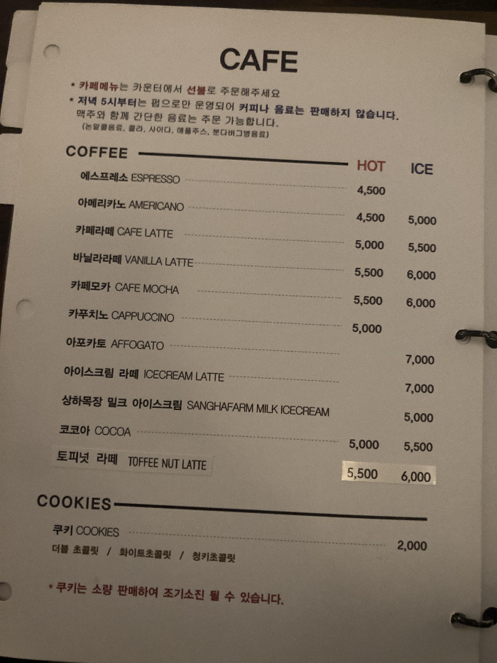 그리고 저녁 5시 이후에는 펍으로만 운영되어서 커피 주문 불가~~!