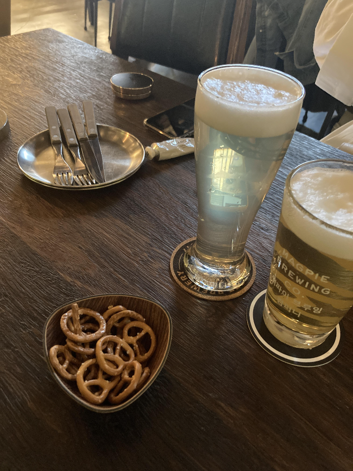 맥주를 주문했더니 나오는 저 과자? 맛도리~