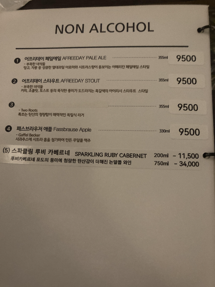 논알콜 맥주도 5가지로 꽤 다양한데, 금액대는 꽤 나가는 걸로~