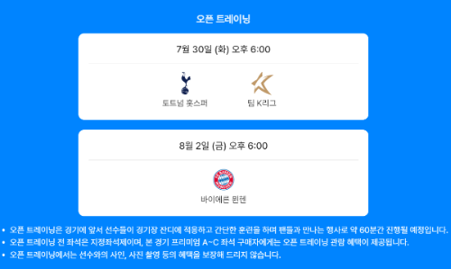 팀 K리그 vs 토트넘 훗스퍼 티켓 가격